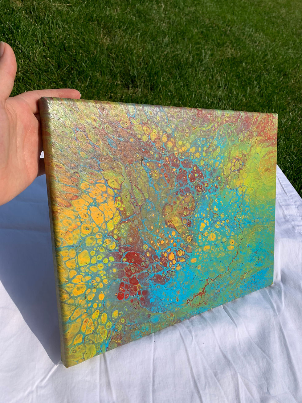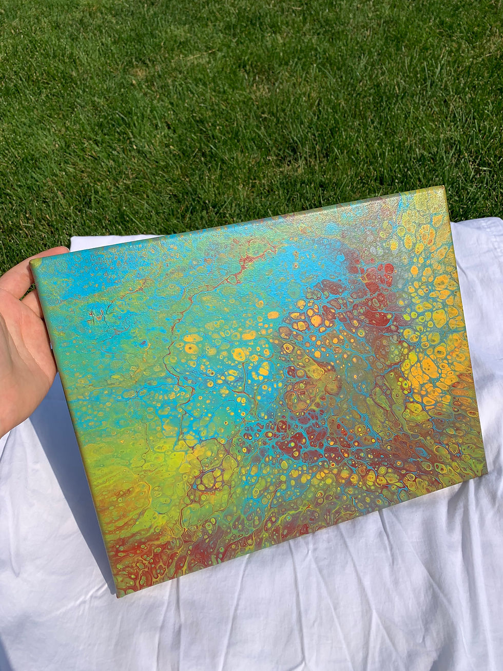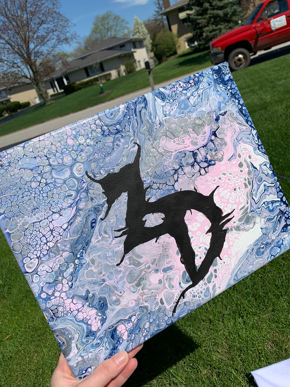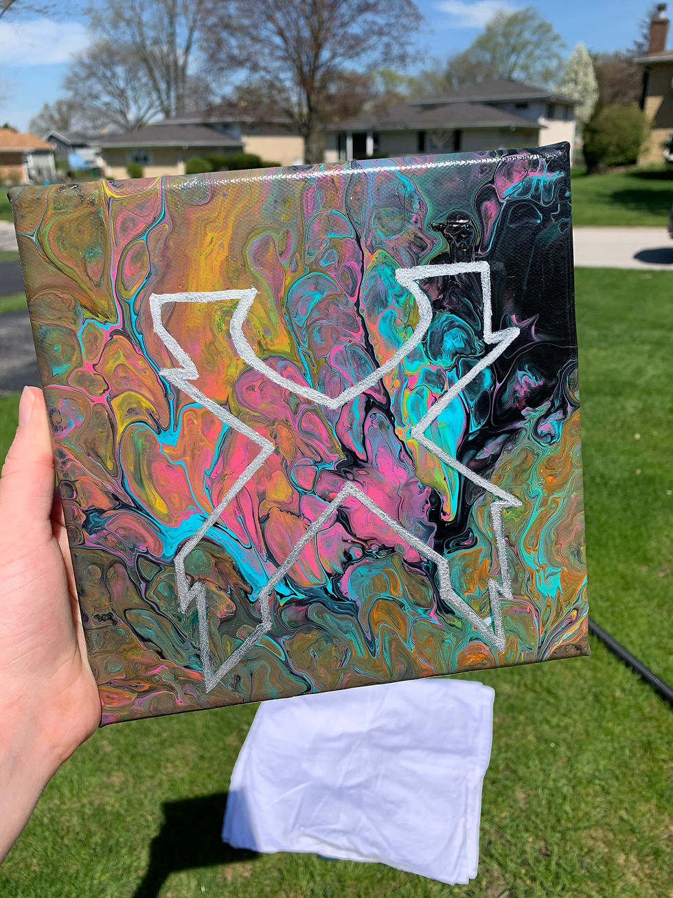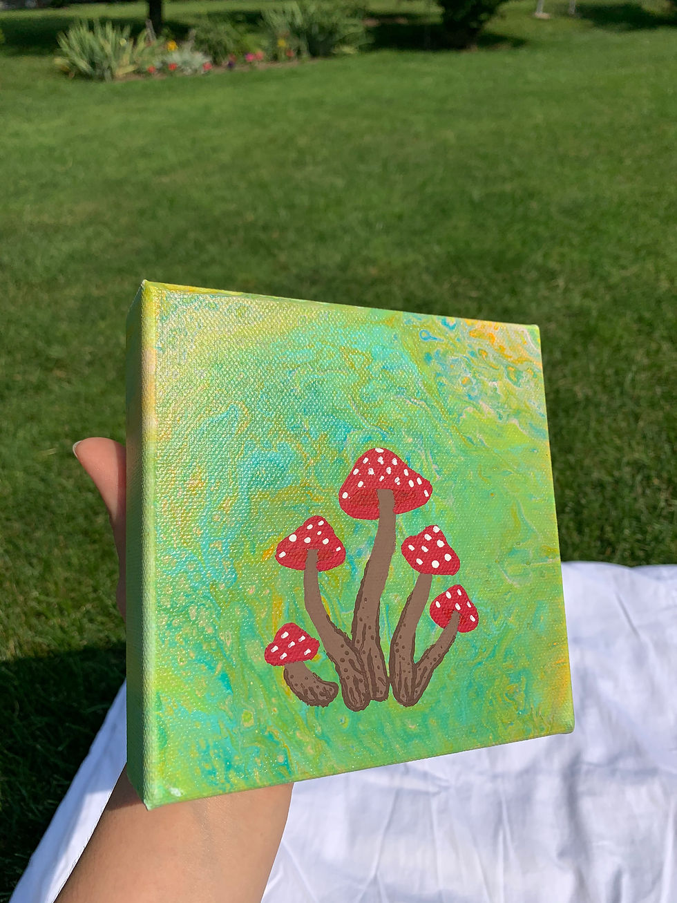 I have a passion for letting my creativity fly and love seeing my pieces, both canvases and clothing, being appreciated by my customers.